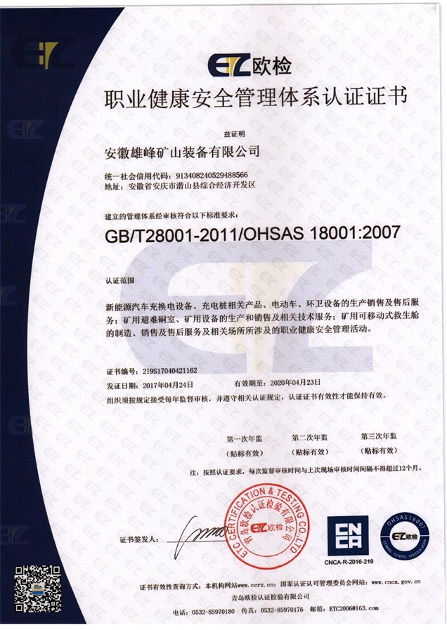安徽天柱雄峰機(jī)電有限公司隸屬于安徽雄峰集團(tuán),公司座落在國家5A級風(fēng)景名勝區(qū)--天柱山腳下,是一家專業(yè)從事研發(fā)、生產(chǎn)、銷售礦山機(jī)械、礦用安全設(shè)備、機(jī)電設(shè)備及國際貿(mào)易的現(xiàn)代高新技術(shù)企業(yè)。公司被評定為國家科技部創(chuàng)新基金項(xiàng)目和國債項(xiàng)目重點(diǎn)支持單位、安徽省優(yōu)秀創(chuàng)新型企業(yè)。公司擁有省級企業(yè)技術(shù)中心和2個研究所,并與中國電子科技集團(tuán)合肥38研究所建立戰(zhàn)略合作關(guān)系。公司引用中國航天技術(shù),研發(fā)生產(chǎn)的礦用可移動式救生艙和避難硐室可以在礦井發(fā)送事故后,為無法及時撤離的礦工提供安全的避難和等待救援的場所。該產(chǎn)品經(jīng)過模擬災(zāi)變環(huán)境下真人106小時的生存試驗(yàn)、高溫試驗(yàn)、爆炸試驗(yàn)等環(huán)節(jié)的檢測,已取得國家礦用產(chǎn)品安全標(biāo)志證書,具備國際領(lǐng)先技術(shù);且已取得專利23項(xiàng),其中兩項(xiàng)發(fā)明專利(大型密閉門新型專利、逃生裝置新型專利)。公司秉承“誠信贏得市場,創(chuàng)新引領(lǐng)未來”的經(jīng)營理念,在“瞄準(zhǔn)高精尖,面向全球化”的發(fā)展戰(zhàn)略指導(dǎo)下,依托雄厚的科技力量和人才優(yōu)勢,致力打造一流的礦用安全裝備,保障礦工生命安全,共建人類幸福家園!